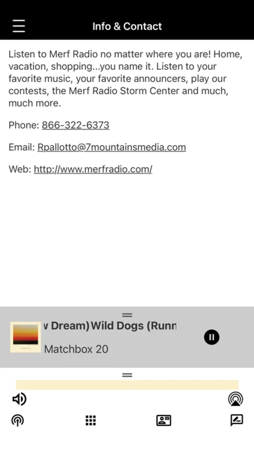 Listen to Merf Radio no matter where you are! Home, vacation, shopping...you name it. Listen to your favorite music, your favorite announcers, play our contests, the Merf Radio Storm Center and much, much more. Download for free now!