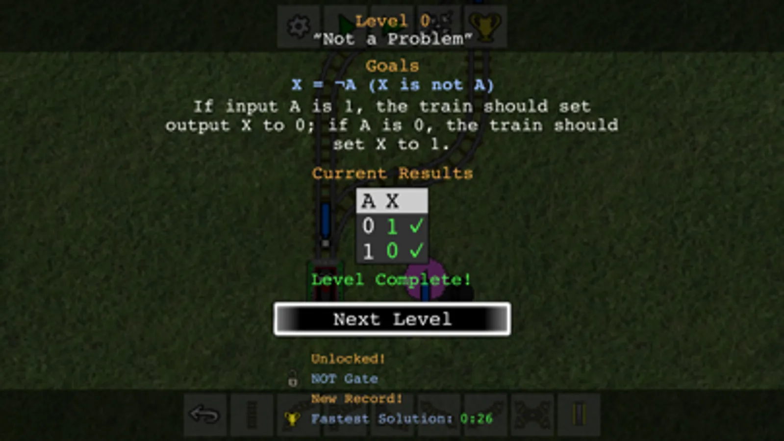 Build a train track to solve digital circuitry puzzles!