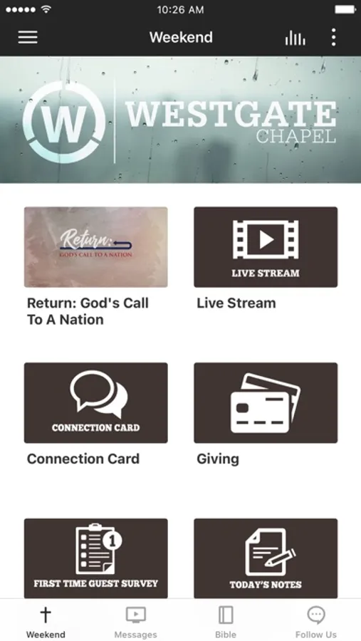 The Westgate Chapel app was developed with the Subsplash App Platform.