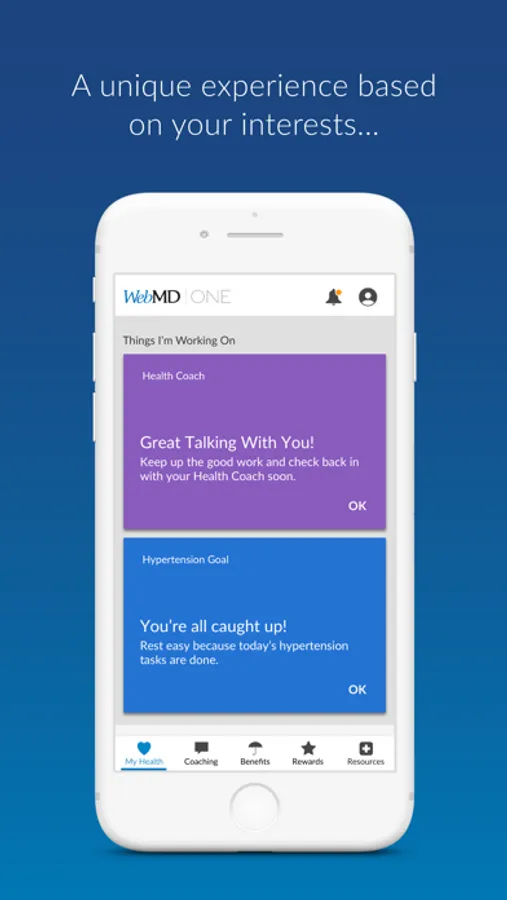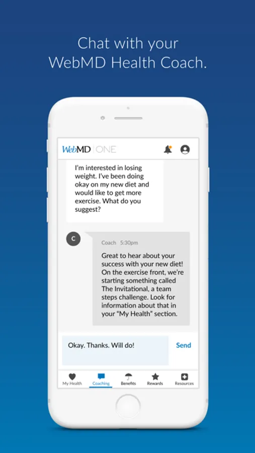 If you download the app without having a qualified WebMD Health Services account, you won’t be able to use it. Depending on the type of well-being program offered by your employer or health plan, some of the features mentioned above may not be available to you or your experience with the app may be different. If you have questions about your access to WebMD Health Services products, ask your benefits administrator.
