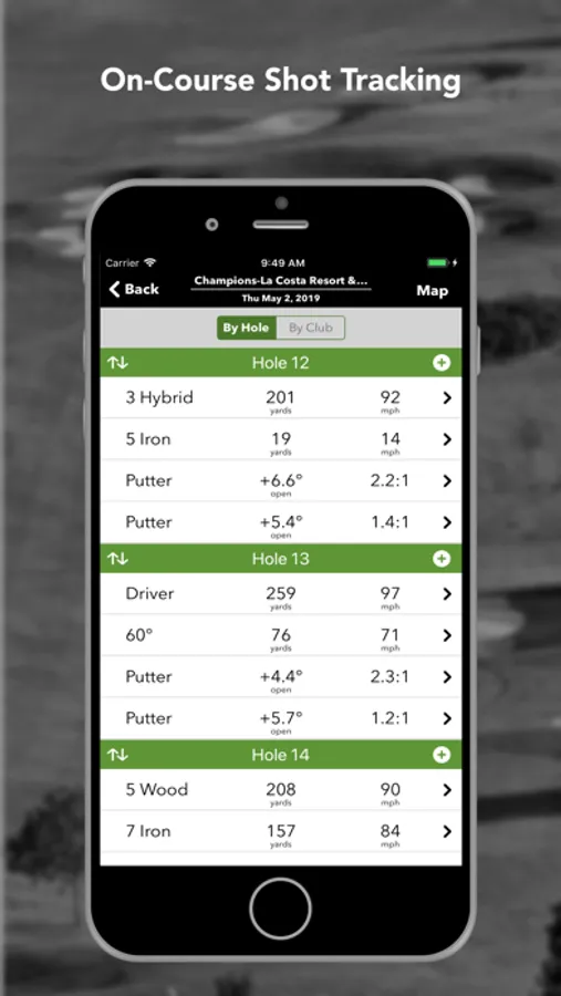 App requires ClubHub sensor devices. Complete Shot Tracking is available with the ClubHub Excel (14-pack) sensor set. ClubHub can record swing parameters and game statistics in the foreground and background. Continued use of GPS running in the background can dramatically decrease battery life.