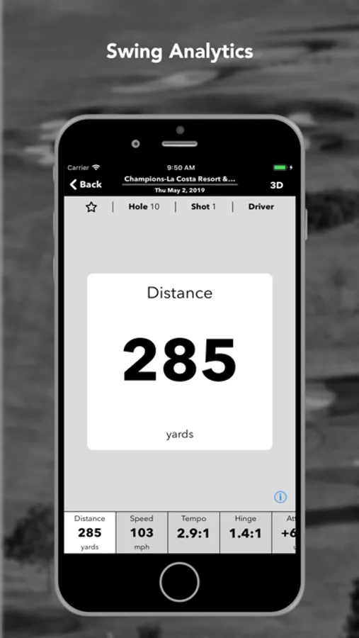 ◆ Swing Analysis: Real-time swing analysis data for shots taken on the course and on the range.
