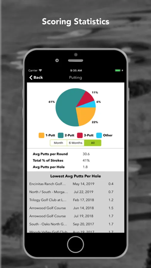 ◆ Scoring Stats: Analyze driving, fairways hit, greens in regulation, and putting.