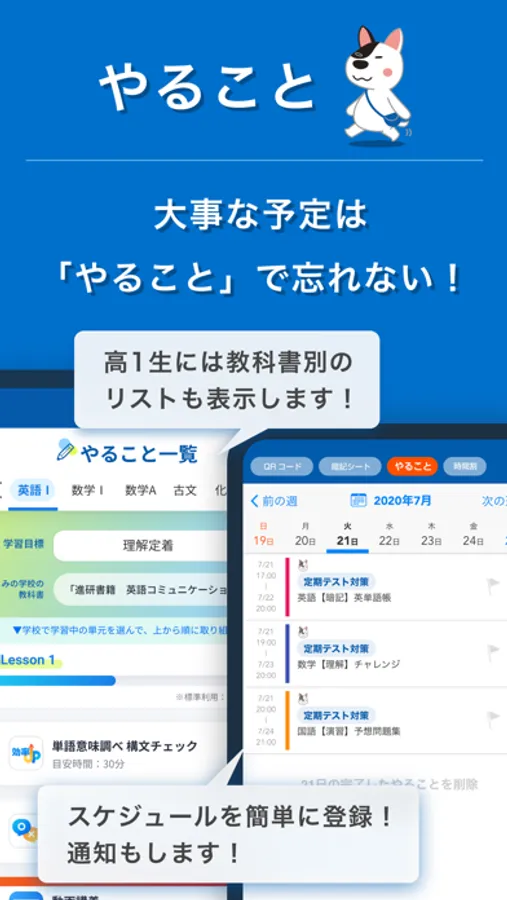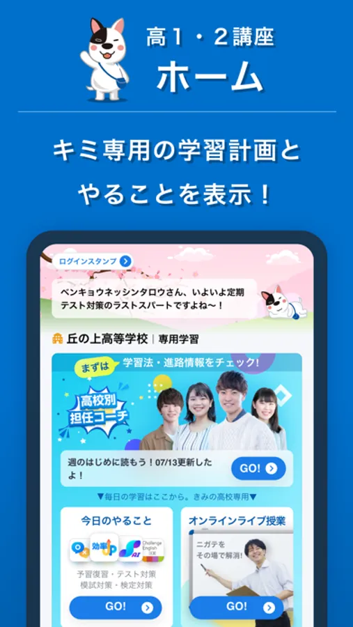 学習の目標・進捗管理や、高校別・志望大別にお届けする情報など、高校講座の学習において欠かせないアプリなのでぜひダウンロードしてください。
