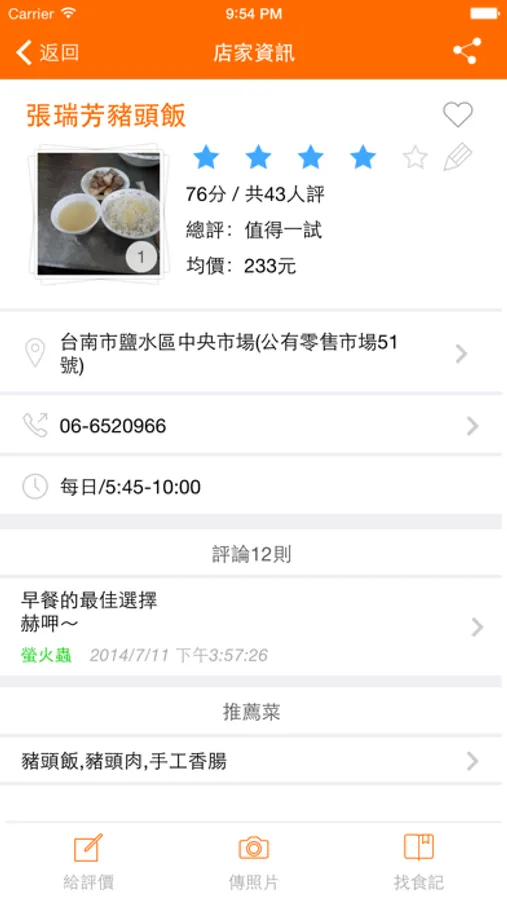 ● 可簡單分享您對店家的評價,寫評論,上傳相片