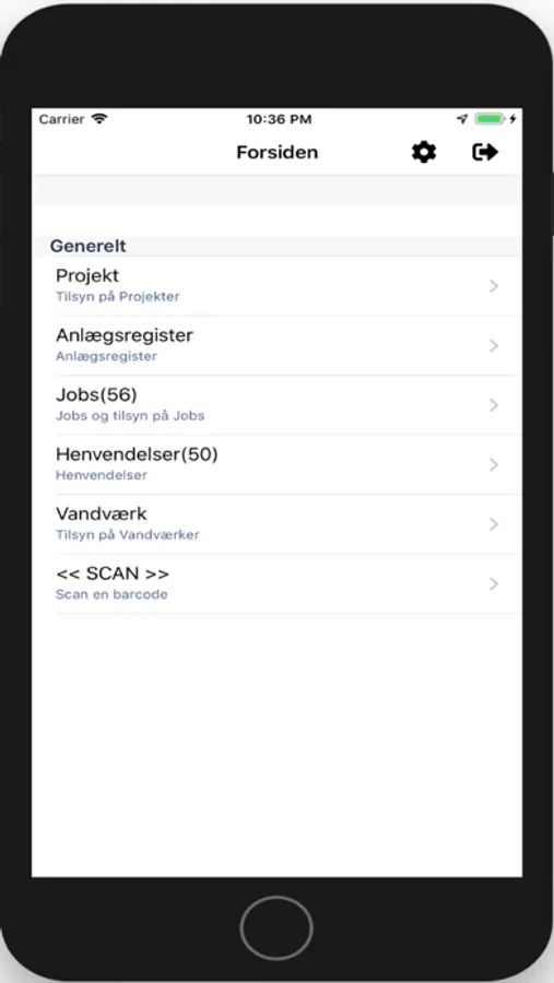 EnviDrift App, kan udføre Job og oprette henvendelser.