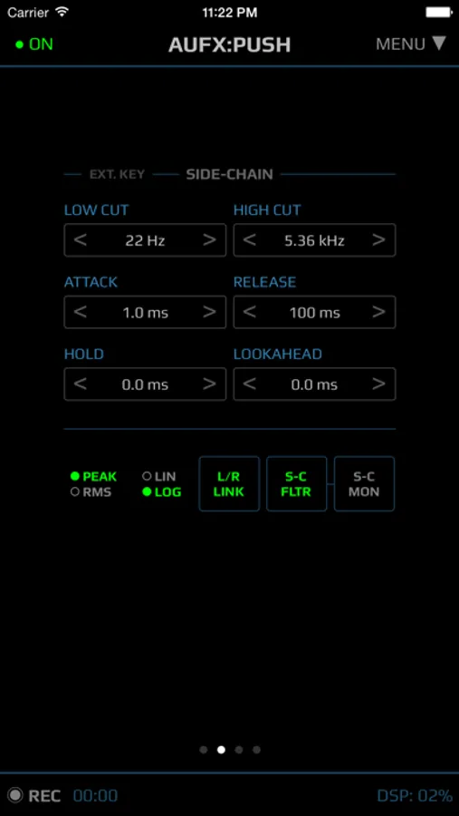 • Built-in side-chain low/high cut filters with monitor toggle.
