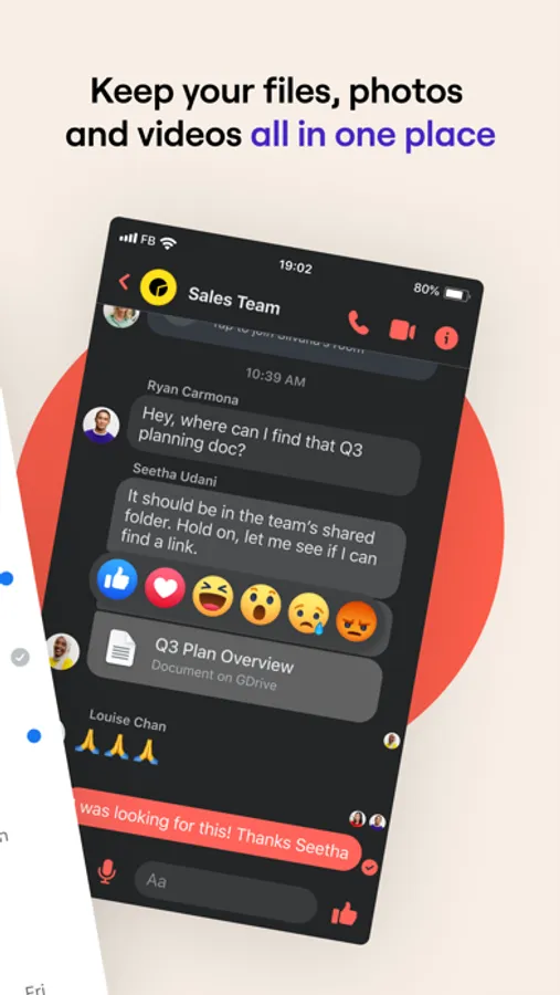 With messaging tools your teams already knows how to use, Workplace Chat lets you: