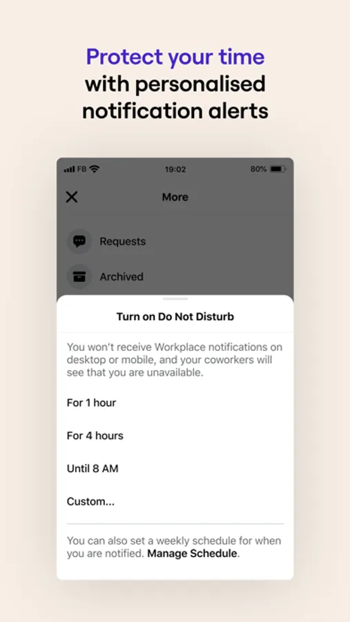 Workplace Chat is ad-free and totally separate from Facebook and Messenger, making it easier to balance your work and private lives.