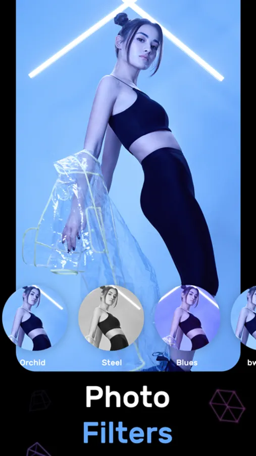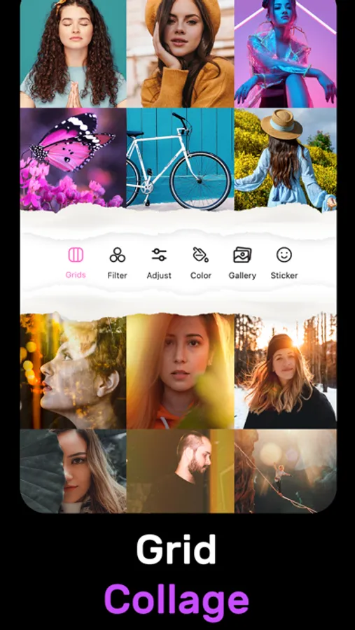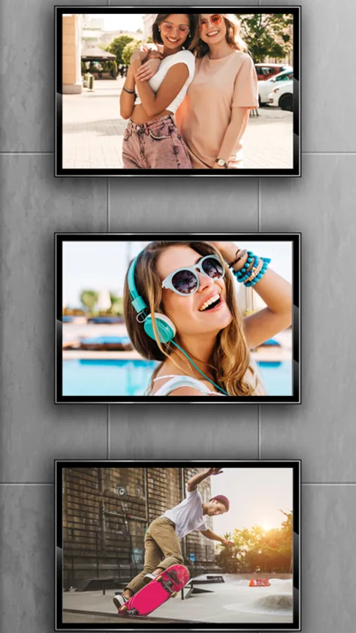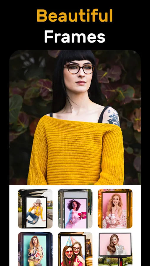 Select a photo or a selfie from the gallery. Choose frommultiple photo frames in different shapes and colors and try them all out.