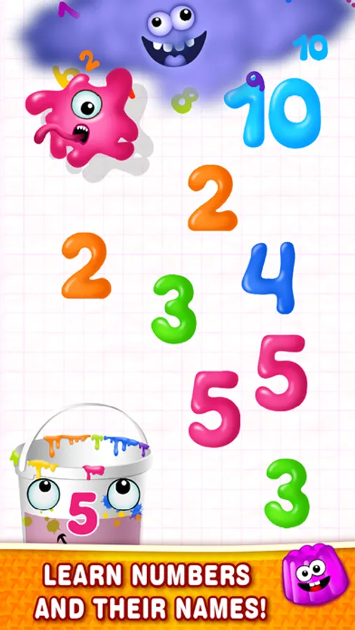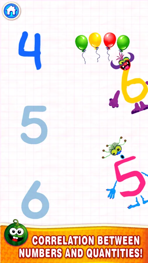 While playing with little number-characters your child will learn numbers and how to write them. They will master counting and learn the correlation between numbers and quantities.