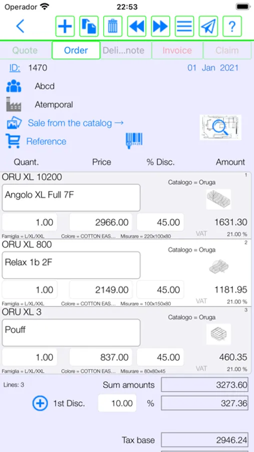discount and VAT, there is also a button to add to the description, a description longer if we