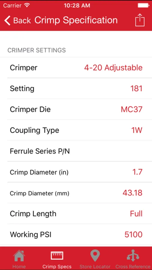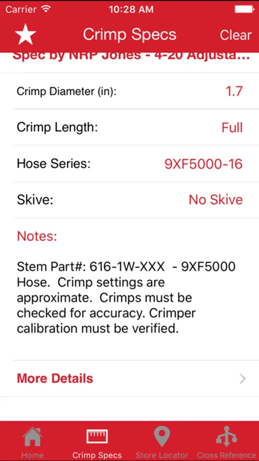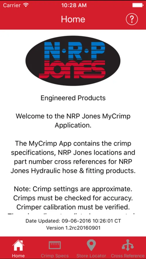 The MyCrimp application provides users with the up to date specifications to properly crimp NRP Jones hydraulic hose and fittings. Users can search by hose style, coupling style, hose size and crimper. The application contains all the information required to properly setup and crimp the desired hose and fitting. In addition to crimp specifications, the app also includes a cross reference to assist in finding the correct NRP Jones product number.