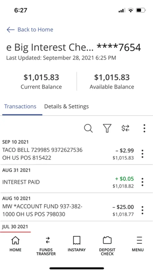 •Transfer funds between your checking and savings accounts