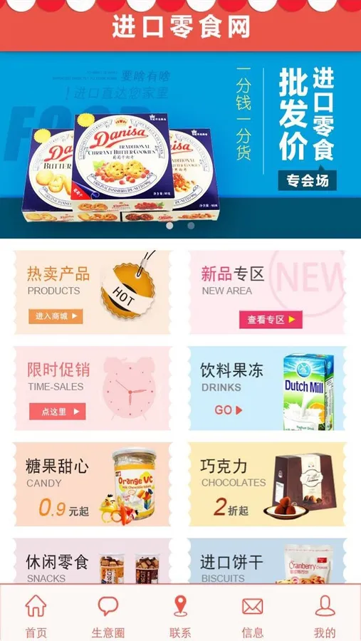 进口的糖果、巧克力、饮料、牛奶、饼干、休闲食品品种齐全、价格合理,畅销市场,进口零食网,你的掌上零食超市,快来满足你那个吃货的胃吧!