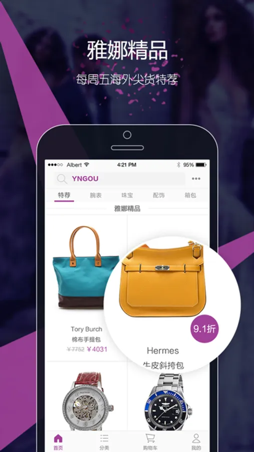 雅娜购,一家专业做进口名品特卖的跨境电商平台,名品授权直售,优雅生活轻松打造,你不可缺少的名品抢购神器;