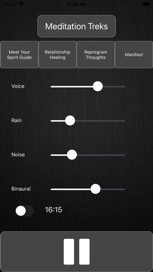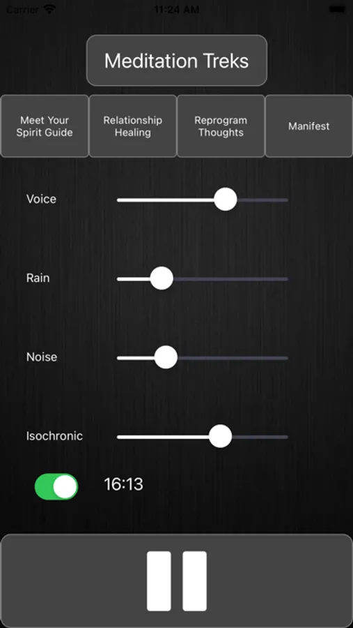 The first installment of Guided Meditation Treks includes 4 spoken-word meditation exercises to tune into your higher self: Meet Your Spirit Guide, Relationship Healing/Strengthening, Reprogram a Counterproductive Thought Pattern, and Manifestation. Each track allows you to independently control the volume levels of the spoken words, a pink noise track, a nature track, and a brainwave entrainment track that features your choice of binaural beats or isochronic tones.