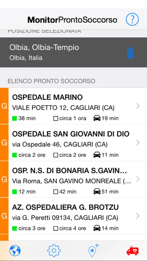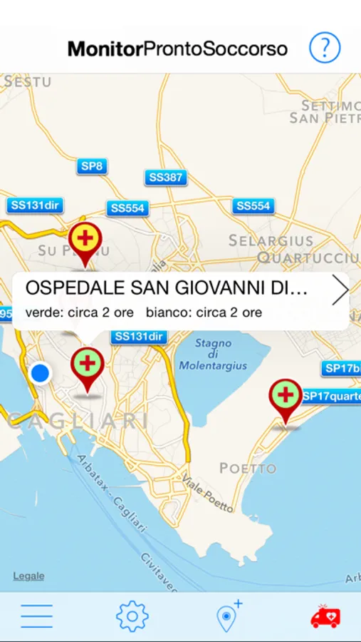 The MonitorPS App allows you to find the First Aid (PS) near your position and to view its position on the map, the crowding status and expected waiting times.