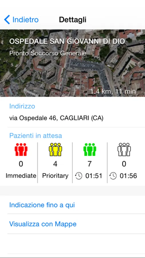 For the PS of interest you will be able to access the details of the patients under management and awaiting visit, and the expected waiting times for the accesses in white and green code. Then you can view the route to reach the emergency room chosen.