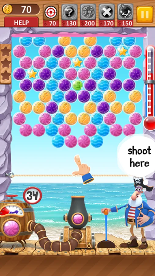Help Archibald the Pirate to find the treasure. For that, you will need to clear the different levels using his cannon. Shoot and hit groups of three or more equal bubbles. Try to find the best way to complete each level, collect all 3 stars and get all the achievements. Earn gold coins to buy amazing power-ups, make upgrades and many more in this addictive match 3 bubble shooter game!