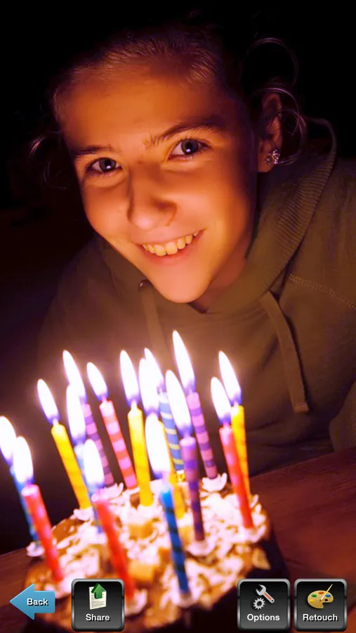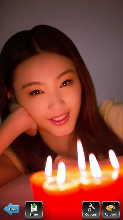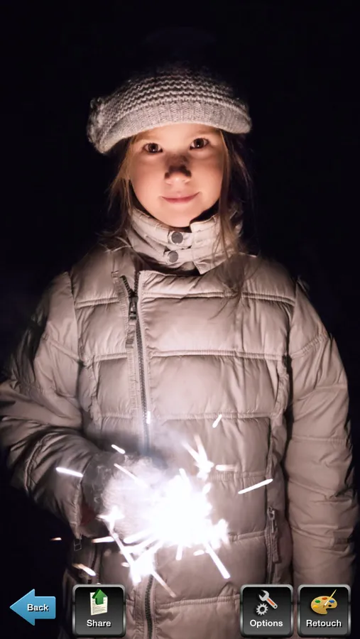 Night Portrait app is designed to deliver a better-looking portrait at night (or in any dimly lit environment). Night Portrait app does so by combining flash with a slow shutter speed. That slow shutter speed produces a longer exposure time, which enables the camera to rely more on ambient light and less on the flash to expose the picture. The result is a brighter background and softer, more even lighting.