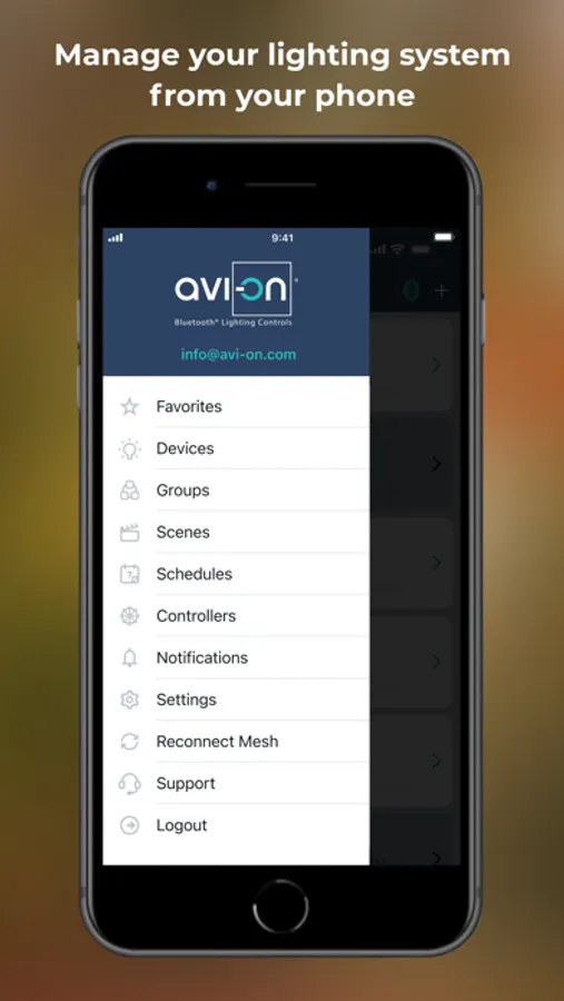 The Avi-on Home app enables customers of GE-branded Bluetooth devices to operate in-wall and plug-in switches using their smartphone. Avi-on no longer has a contractual relationship with the manufacturer, Jasco Products, or any duty to support GE by Jasco Products, and these products are no longer being sold. Avi-on continues to support these devices solely as a courtesy to existing users.