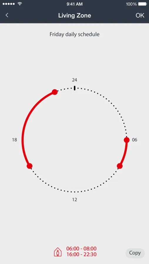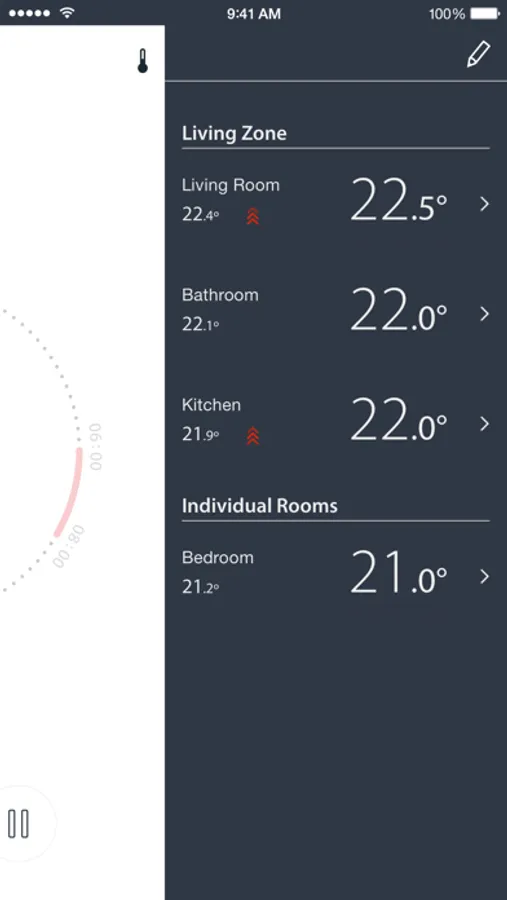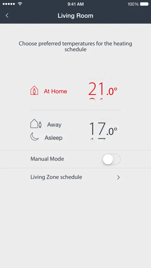 - Living Zone – set the temperature in one room or group more rooms for easy zone control