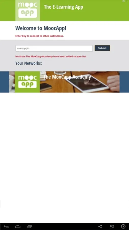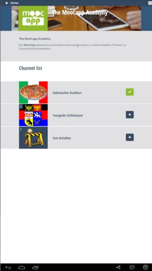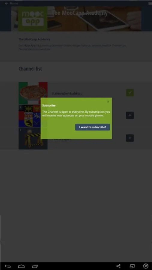 With the MoocApp for Smart phones & Tablets, participants can enroll in an academy or institution and subscribe to receive specific episodes or channels on mobile devices.