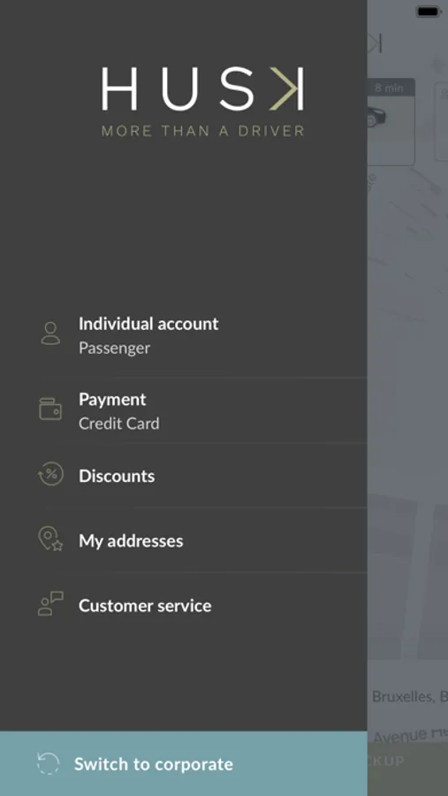 Driven by a pro in one go: HUSK ex CarASAP offers new freedom. Download the free HUSK application and discover a new way of moving about in Brussels and Brabant. Thanks to HUSK technology, you can book a car with a professional driver - either immediate or in advance. The HUSK cars are geolocalised; therefore the correspondences are optimised, waiting times are minimal and CO2 emissions are reduced. You can rate your driver. Attractive rates, also for intercity trips, and the cost is settled before starting the ride. Automatic and safe payment with your debit card. Your driver takes you there, just relax: HUSK is affordable, comfortable and reliable.