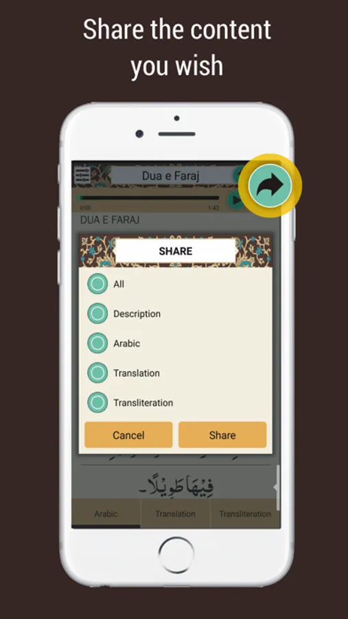 • Share any content including Arabic