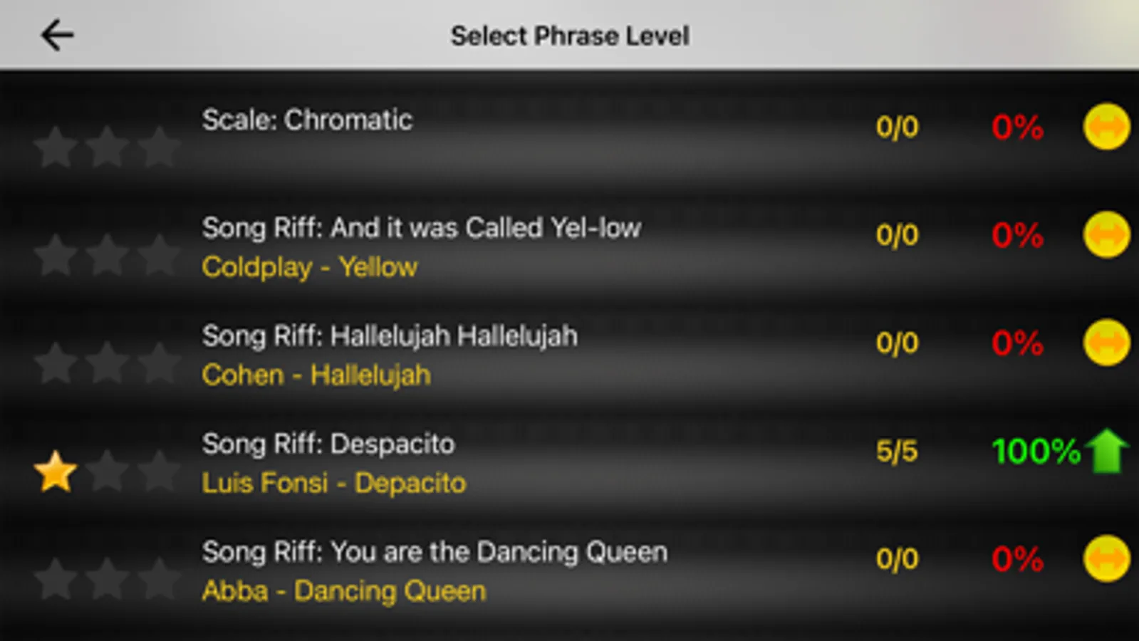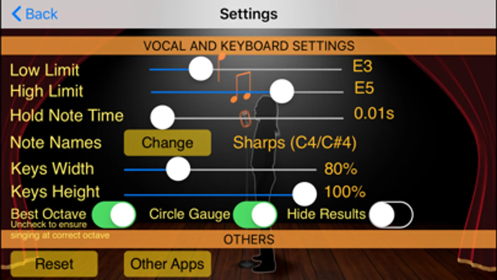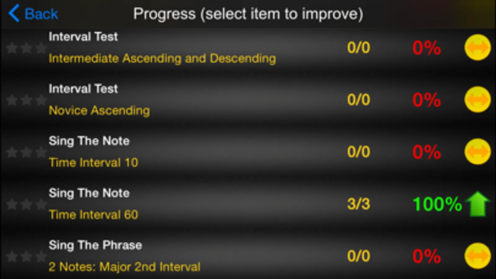 Series of levels and exercises to increase range and perfection. The pitch analyses shows whether singers can perfectly sing intervals.