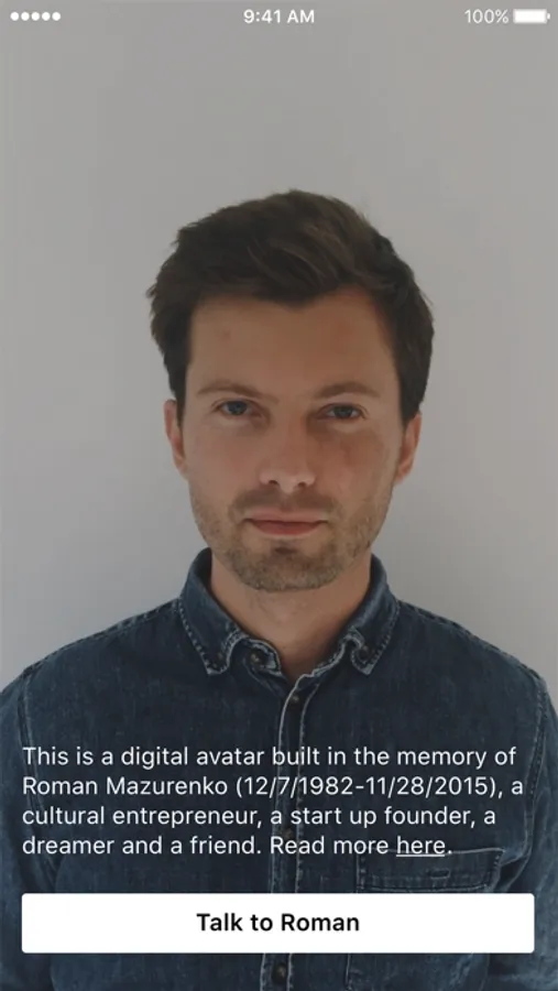 This digital avatar is made in memory of Roman: startup founder, cultural entrepreneur, dreamer, son and friend. Dream on, Roman <3