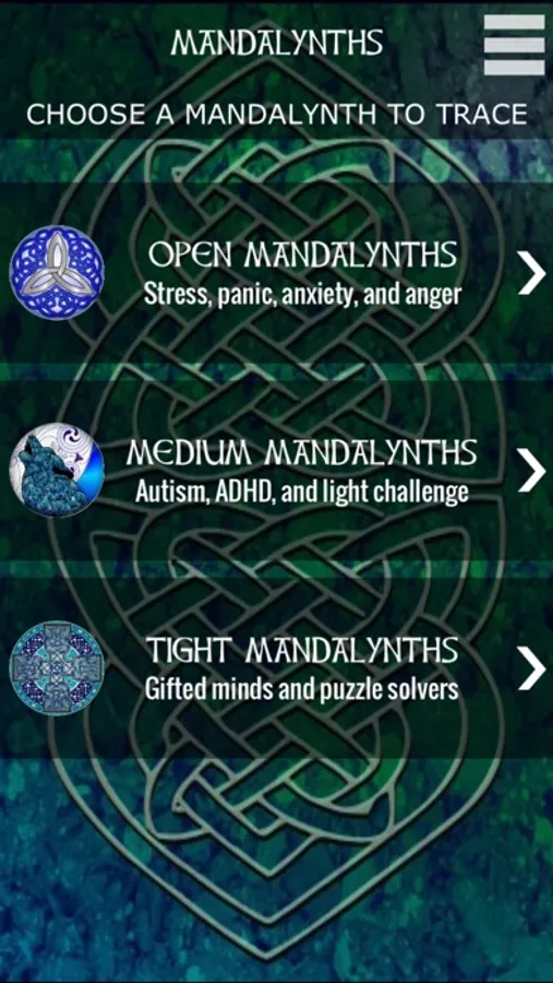 Open Mandalynths are best for managing stress, anxiety, panic and anger because they are very calming to trace.