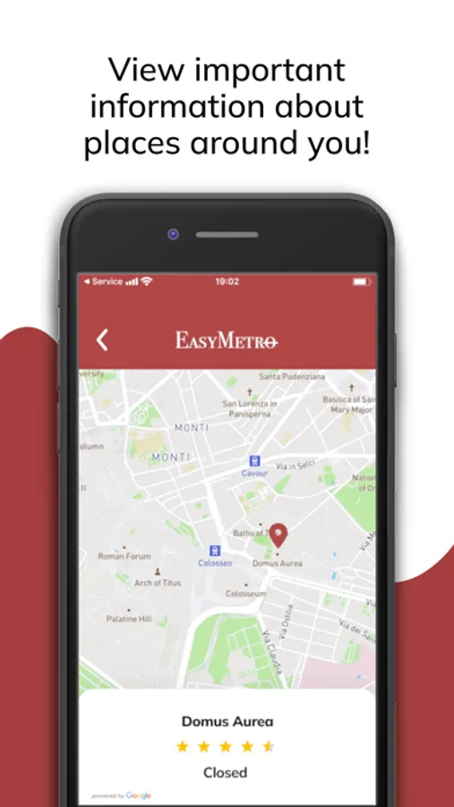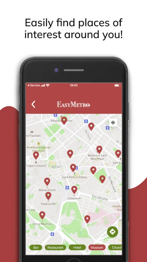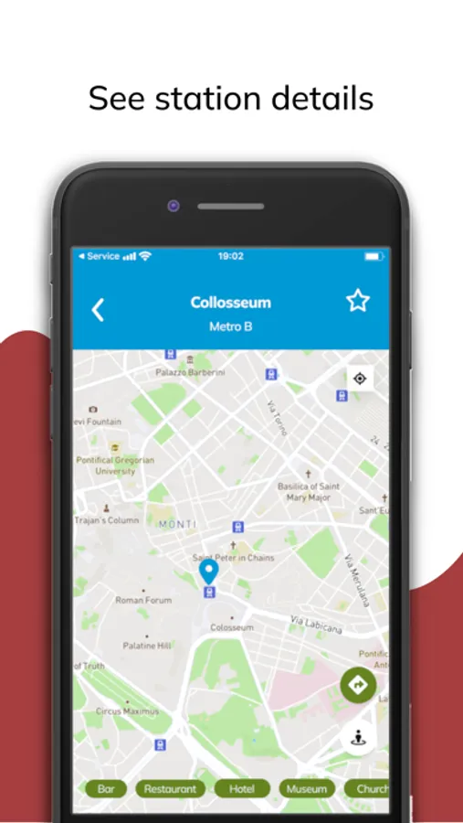 - NEARBY PLACES: Find easily hotels, restaurants, museums and much more in the vicinity of a specific metro station. For example, do you want a hotel near the Colosseum? No problem: you can get informations and directions.