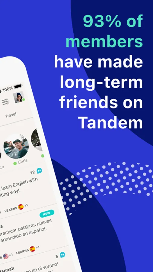 Learn, connect, and share with 1-to-1 chats or try out Parties, the ultimate group learning audio space. There are millions of Tandem members with just as many interests, so find your people – and start speaking their language today!