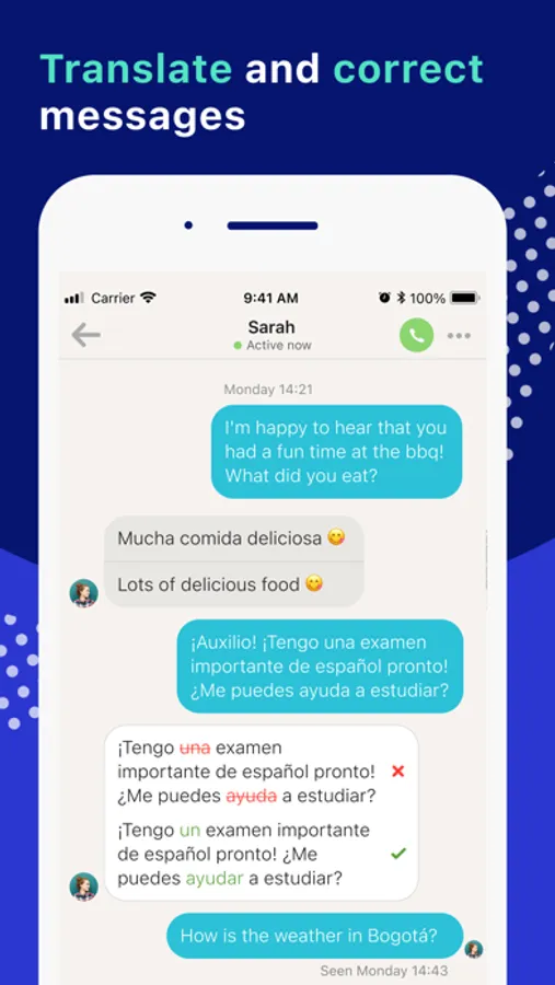 Fit in with the locals and improve your speaking skills using voice notes, audio and video calls.