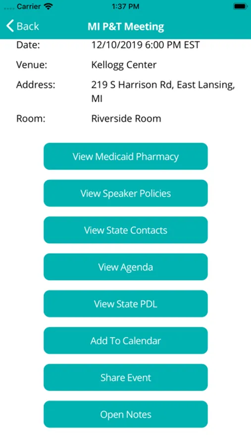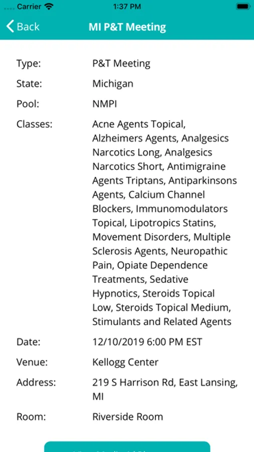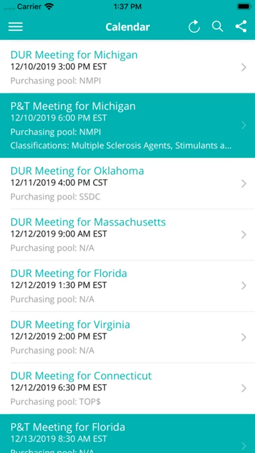 This app is particularly useful for pharmaceutical manufacturer account managers that are responsible for Fee-For-Service Medicaid. Other highlights include the ability to set priority states and drug classes, and to receive push notifications when those drug classes are up for review in each state. Meeting information can also be saved to your device's calendar.
