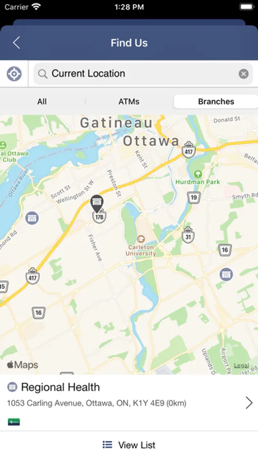 Location services - allows the app to use your device's GPS to find the nearest branch or ATM