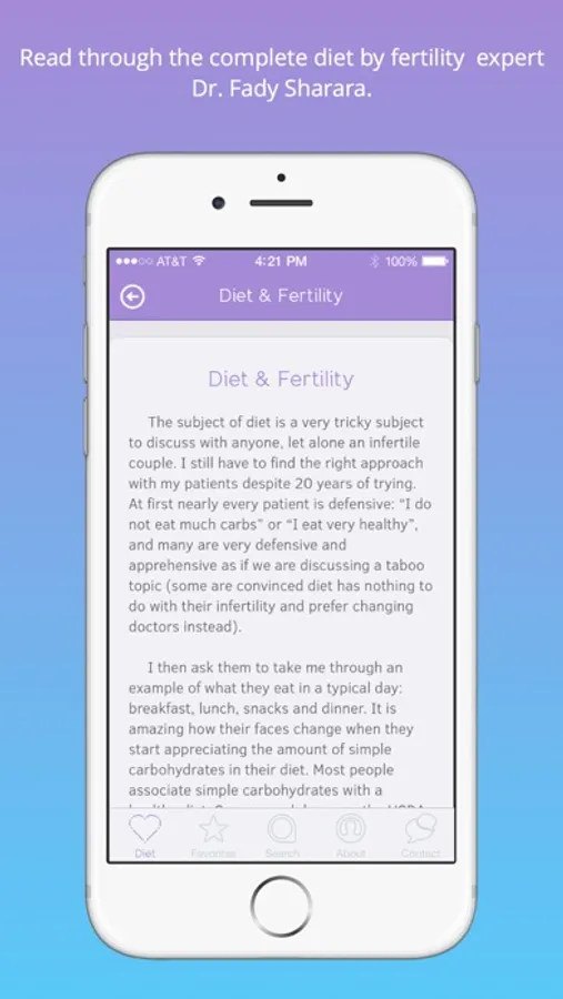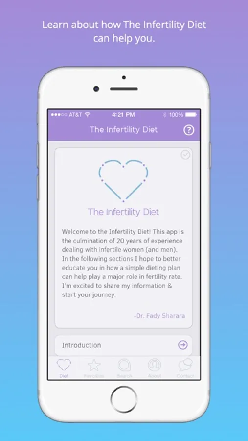 With this app, renown practitioner and fertility specialist Dr. Fady Sharara educates you on how a simple dieting plan can help play a major role in fertility rate.