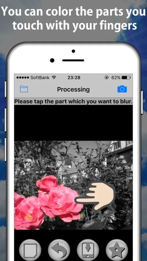 This application can emphasize the part of the image by coloring only the part of the photograph.