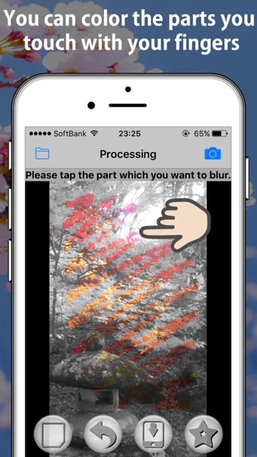 2. Trace or tap the part which you want to color in the “Processing” tab.(※2)