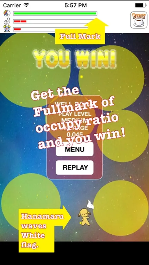 If Hanamaru does not surrender within the time limit, you lose.Hanamaru waves the rainbow flag of signs of victory.