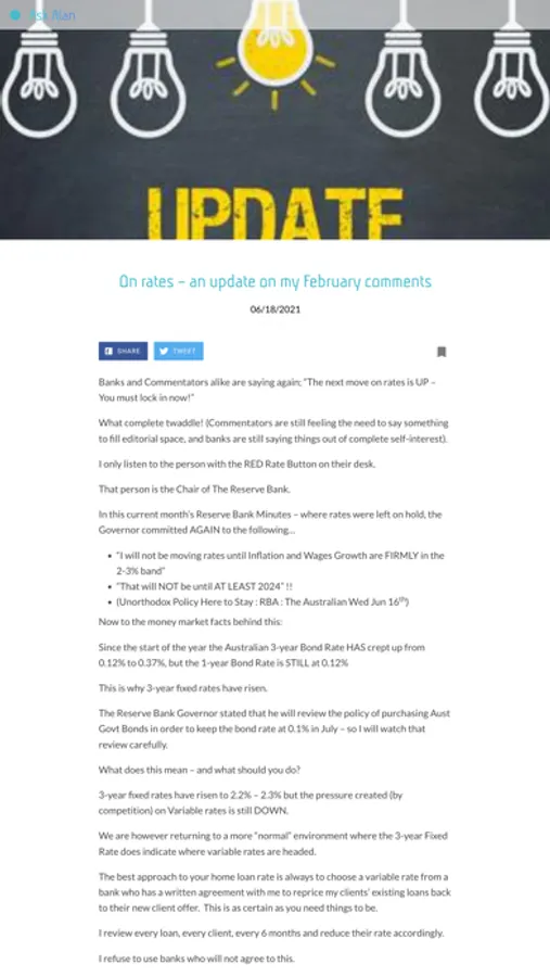 “Whether you are a first time homebuyer, shifting house, looking to refinance or a property investor I'd love to help.”…Ask Alan