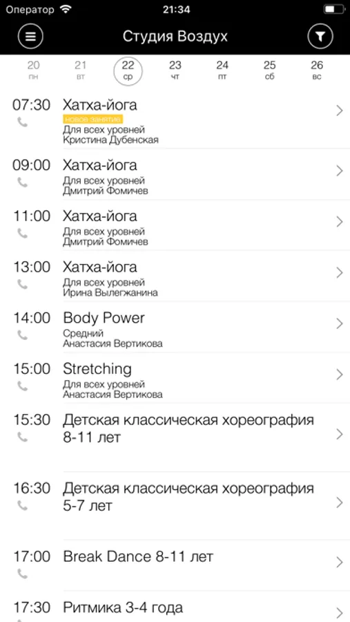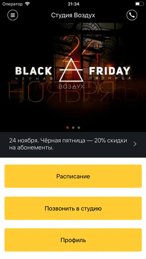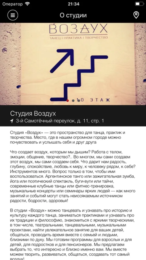 Приложение предназначено для клиентов клуба Студия Воздух.