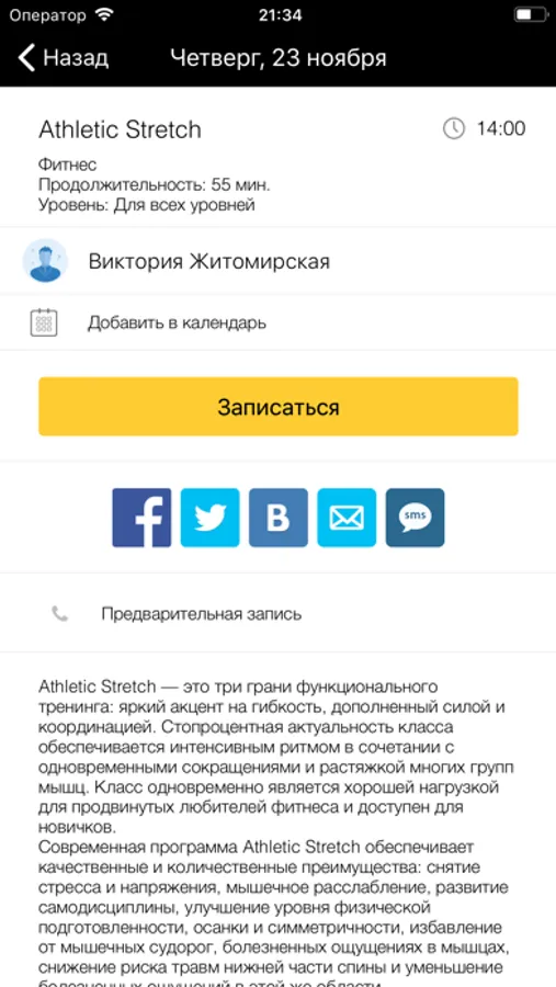 - получать оповещения о предстоящих тренировках и обо всех изменениях;