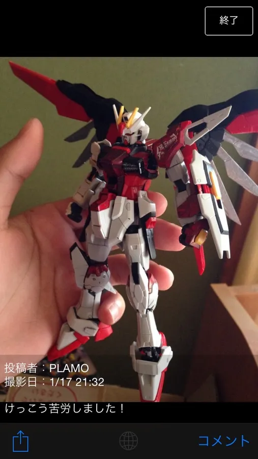 このアプリでは、ご自分が作った渾身のプラモデル作品の写真を投稿し、日本はもちろん、世界中のプラモデルファンに披露することができます。