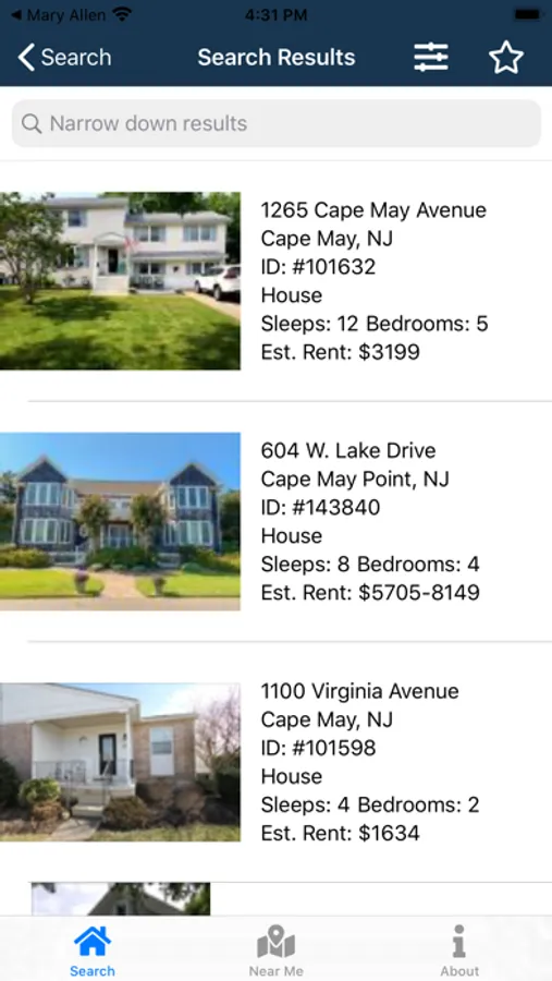 With this app you can view all aspects of vacation properties to rent in the Cape May area, including: