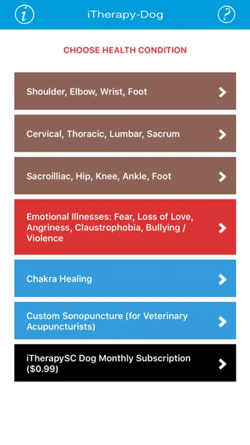 Shoulder, Elbow,Wrist, Foot,Cervical, Thoracic, Lumbar, Sacrum, Sacroilliac, Hip, Knee, Ankle, Foot, Emotional Illnesses (Fear, Loss of Love, Angriness, Claustrophobia), and Chakra Healing.