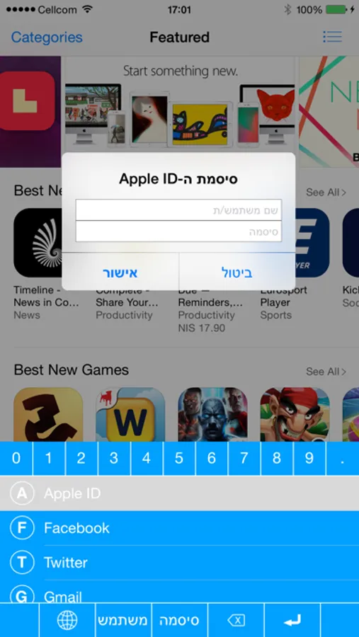 תוכלו לגשת לרשימה מכל אפליקציה קיימת בעזרת מקלדת סיסמאות יחודית לאפליקציה.