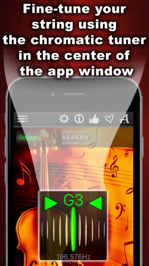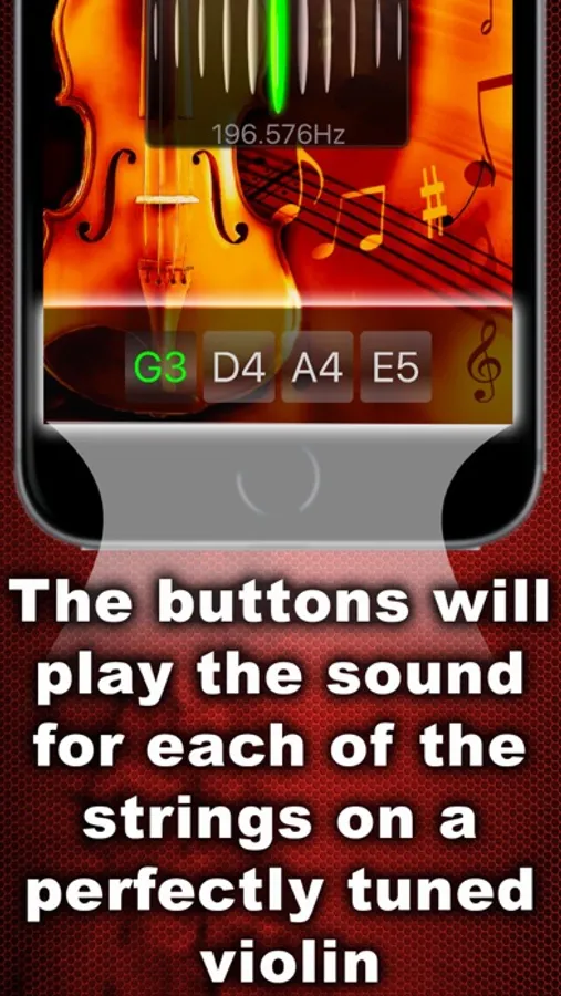 Simple and powerful, this violin tuner is both in one! You can listen the sound of each tuning string as well check & fine-tune the strings with the help of the chromatic tuner, placed in the middle of the app window!